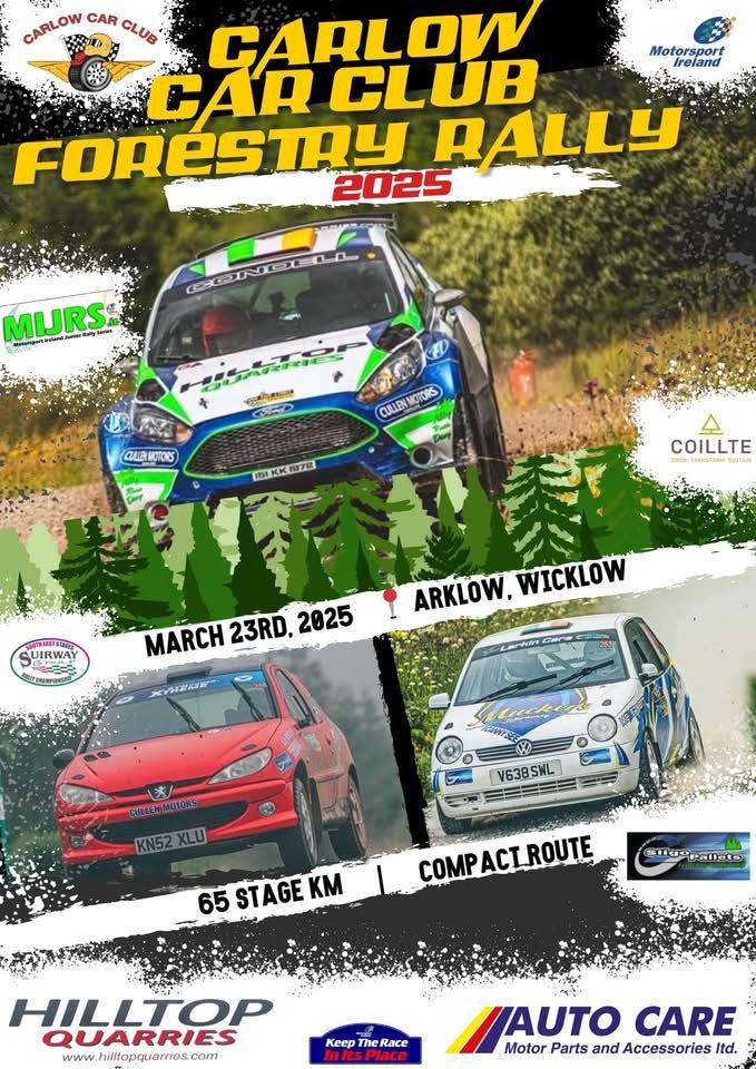 The Carlow Car Club Forestry Rally is a key event in the Irish motorsport calendar, attracting drivers and teams from across the country. Wicklow’s scenic surroundings and well-maintained forestry tracks provide the perfect setting for a thrilling competition. The event will feature high-speed action as drivers navigate challenging off-road routes through the region’s forest trails.