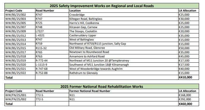 “We are delighted for the continued investment in Wicklow.  Ensuring the safety and well-being of all road users is a top priority, and this funding will help create safer environments for the citizens of County Wicklow.”